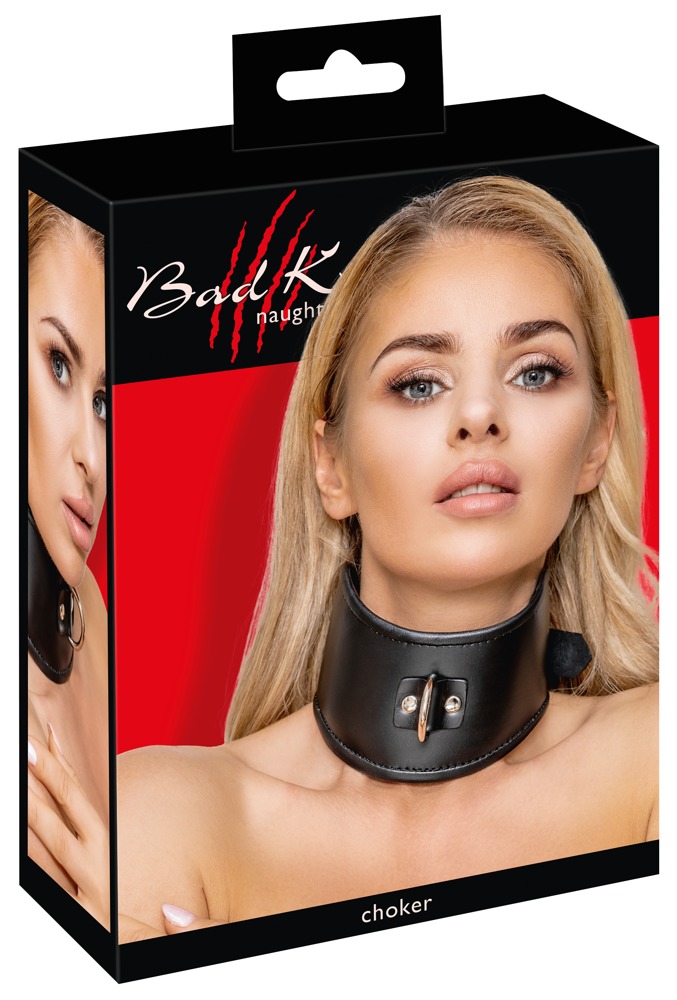 Bad Kitty Choker - kožený obojok s krúžkom (čierny)