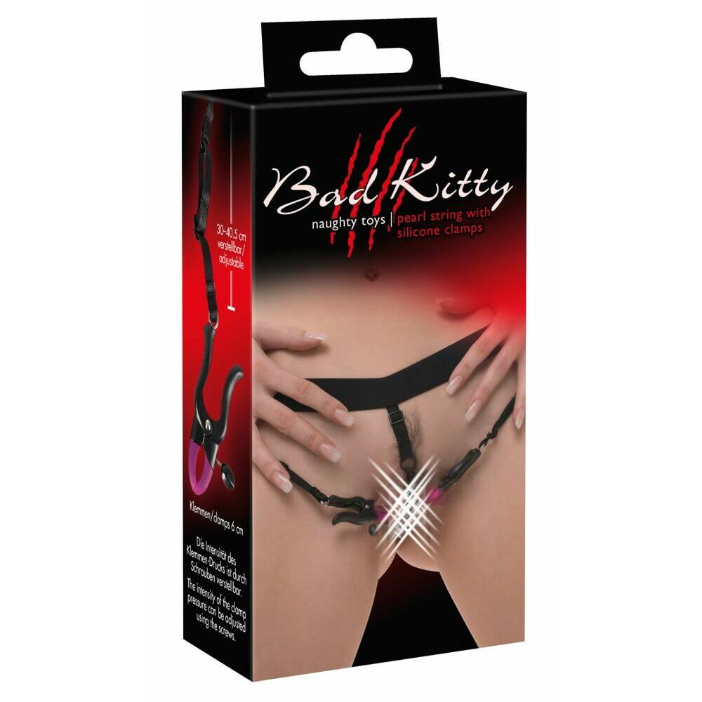 Bad Kitty - nohavičky s klipsami na klitoris fialovo-čierne (S-L)
