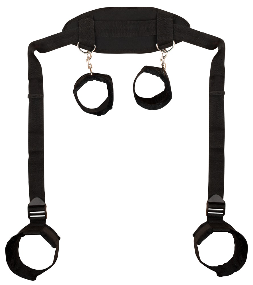 - Poutá s kovovým karabínovým uchytením a odnímateľnými suchými zipsmi umožnia upevniť partnerove ruky