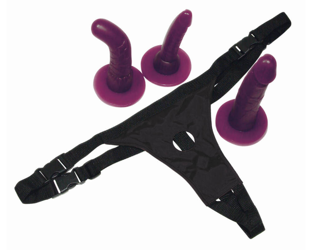 Bad Kitty Strap-On Set – 4-dielna pripínacia súprava (fialová)