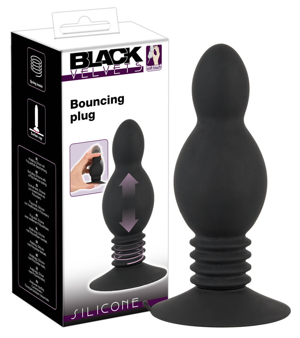 Black Velvets Bouncing Plug - pružinové análne dildo s prísavkou (čierne)