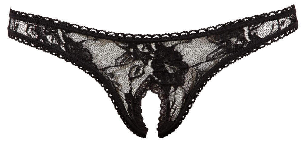 Sexi čierne čipkové tangá s rozparkom - dokonalé na vzrušujúcu rýchlovku!