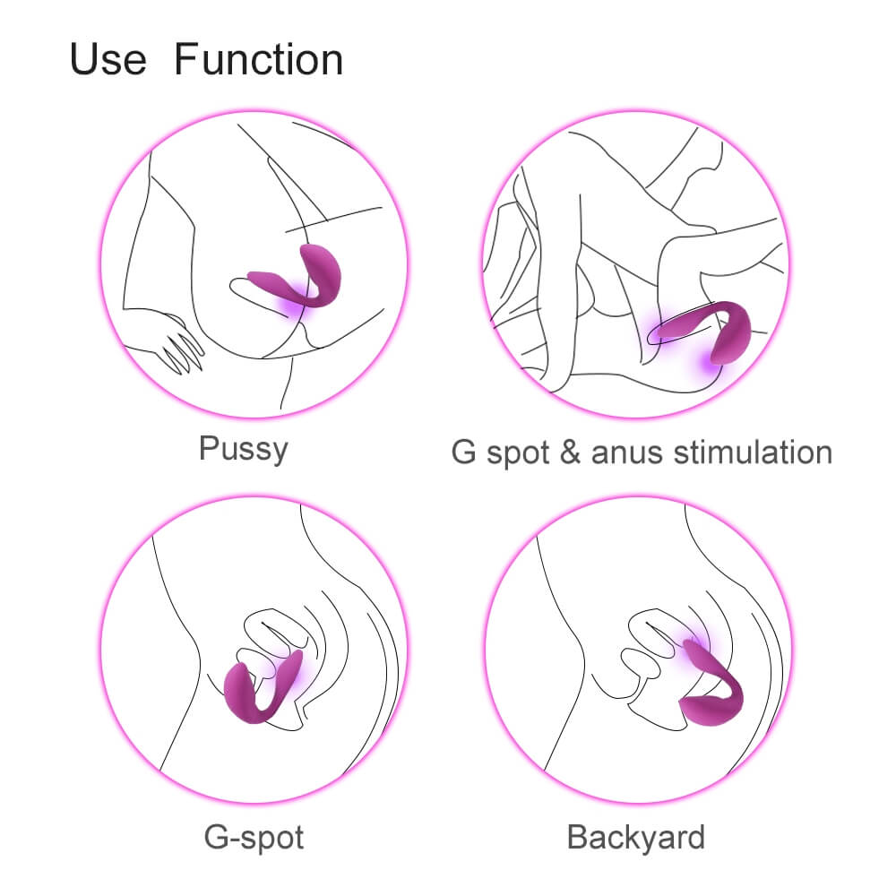 Spodnú tenšiu časť pomôcky treba vsunúť do vagíny, vrchnú hrubšiu časť treba umiestniť na klitoris (ohnutá časť pomôcky sa ďalej nedá ohýbať).