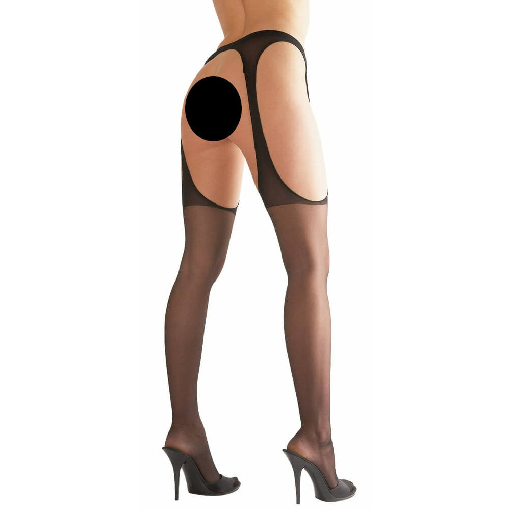 Cottelli Collection Sex Tights – pančuchy s efektom podväzkov, čierne (otvorený rozkrok)