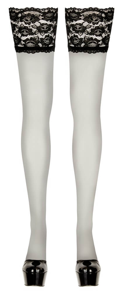 Cottelli – samodržiace pančuchy s extra širokou čipkou (čierne)
