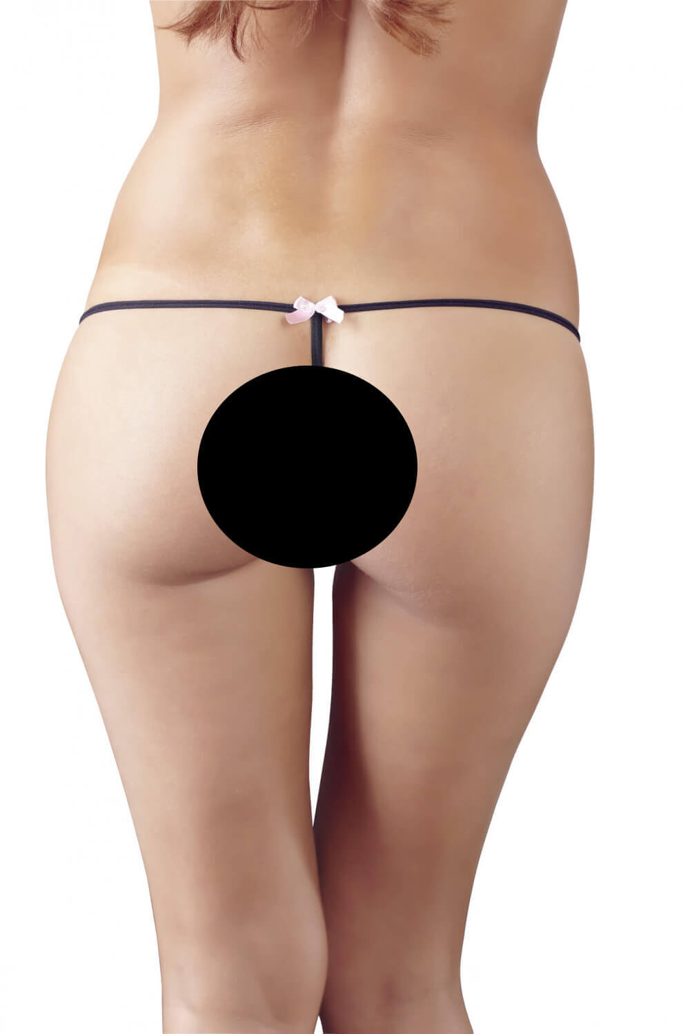 -1 ks tangá v tvare do T s priesvitnej sieťoviny s drobnými okami, s pružnými pántami, vzadu zdobené malou, ružovou mašličkou