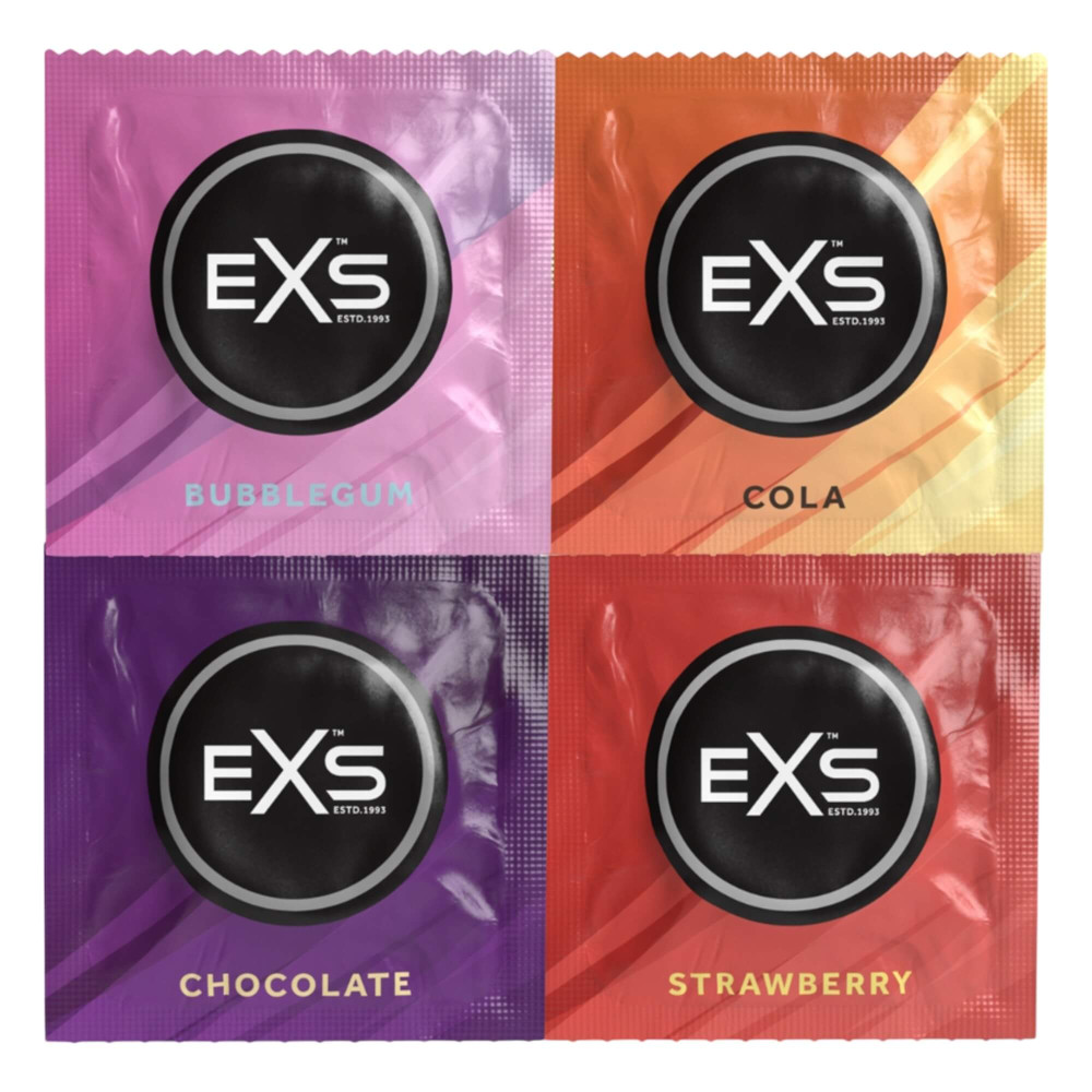 EXS Mixed - kondóm - zmiešaná príchuť (12 ks) Výhody : Bezpečné kondómy normálnej hrúbky.S ejakulačnou nádržkou a lubrikáciou.Anatomický tvar zabezpečuje perfektné priliehanie.S lubrikáciou na silikónovej báze pre dlhotrvajúcu klzkosť.Štyri rôzne príchute v jednom balení - jahoda, čokoláda, žuvačka a cola.Normálna veľkosť.Netestované na zvieratách,... Viac info