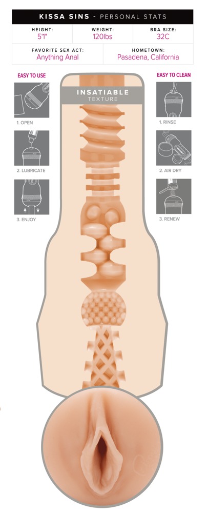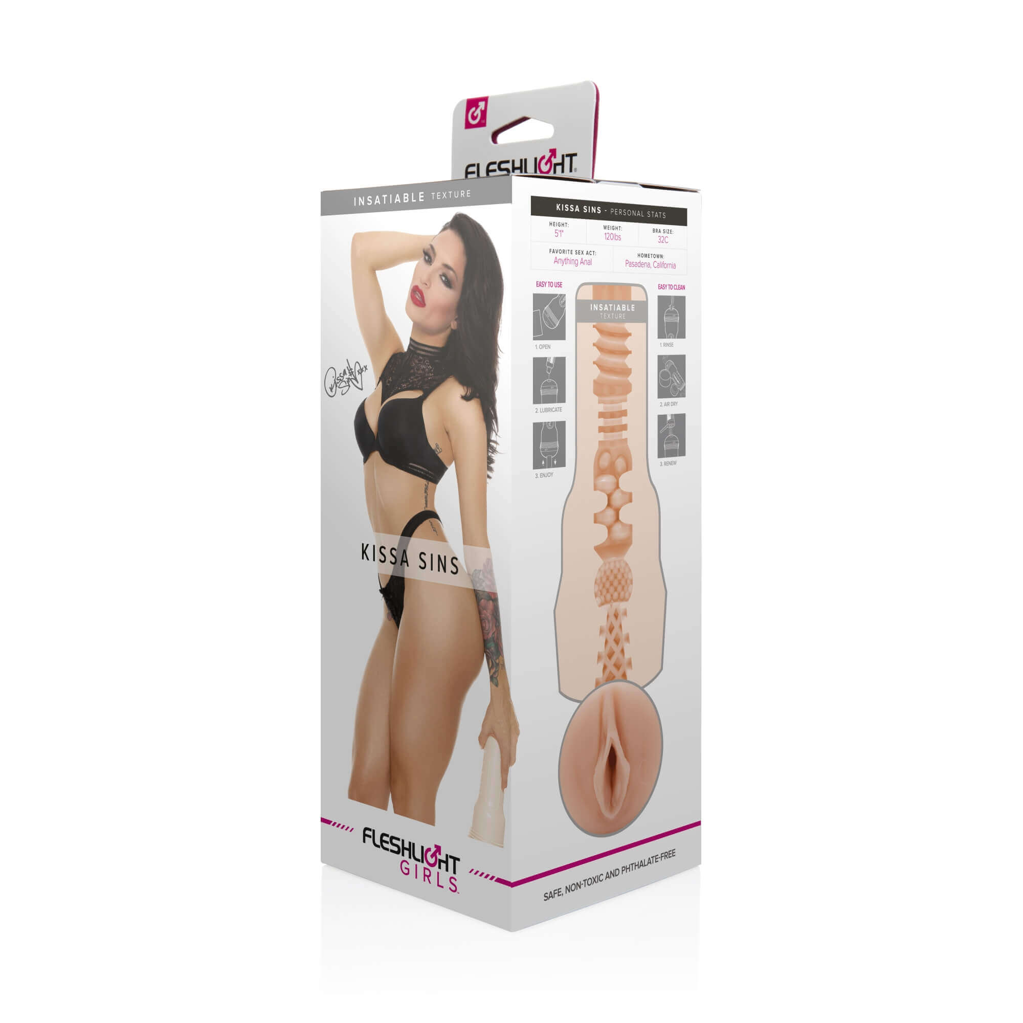 Fleshlight Kissa Sins Insatiable - realistický masturbátor Nádherná Kissa Sins je teraz k dispozícii aj u vás doma!Vzor intímnej časti tela slávnej Hviezdy erotiky, aby ste ho mohli obdivovať nielen cez obrazovku! Výhody :FLESHLIGHT!!! Úplne živý zážitok túžby!Zmyselne, jemne - takmer pohladí váš penisMäkké, flexibilné - perfektne sadne na všetky veľkostiMaximálne... Viac info