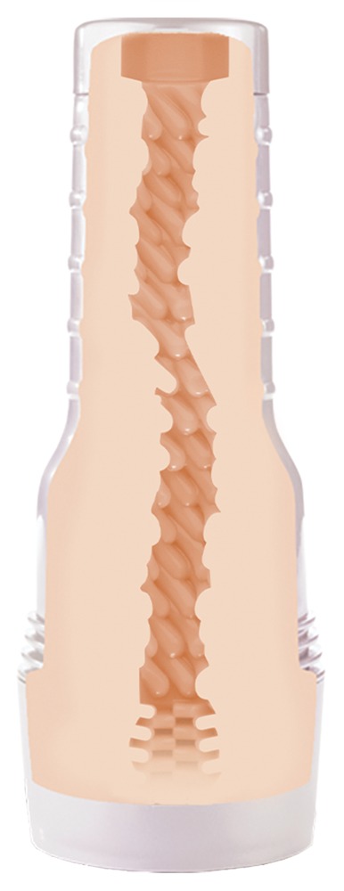 V skutočnom puzdre Fleshlight, ktoré je vyrobené v bielej farbe, jedinečné, charakteristické pre tieto produkty, vo forme baterky - pre diskrétne uloženie.
