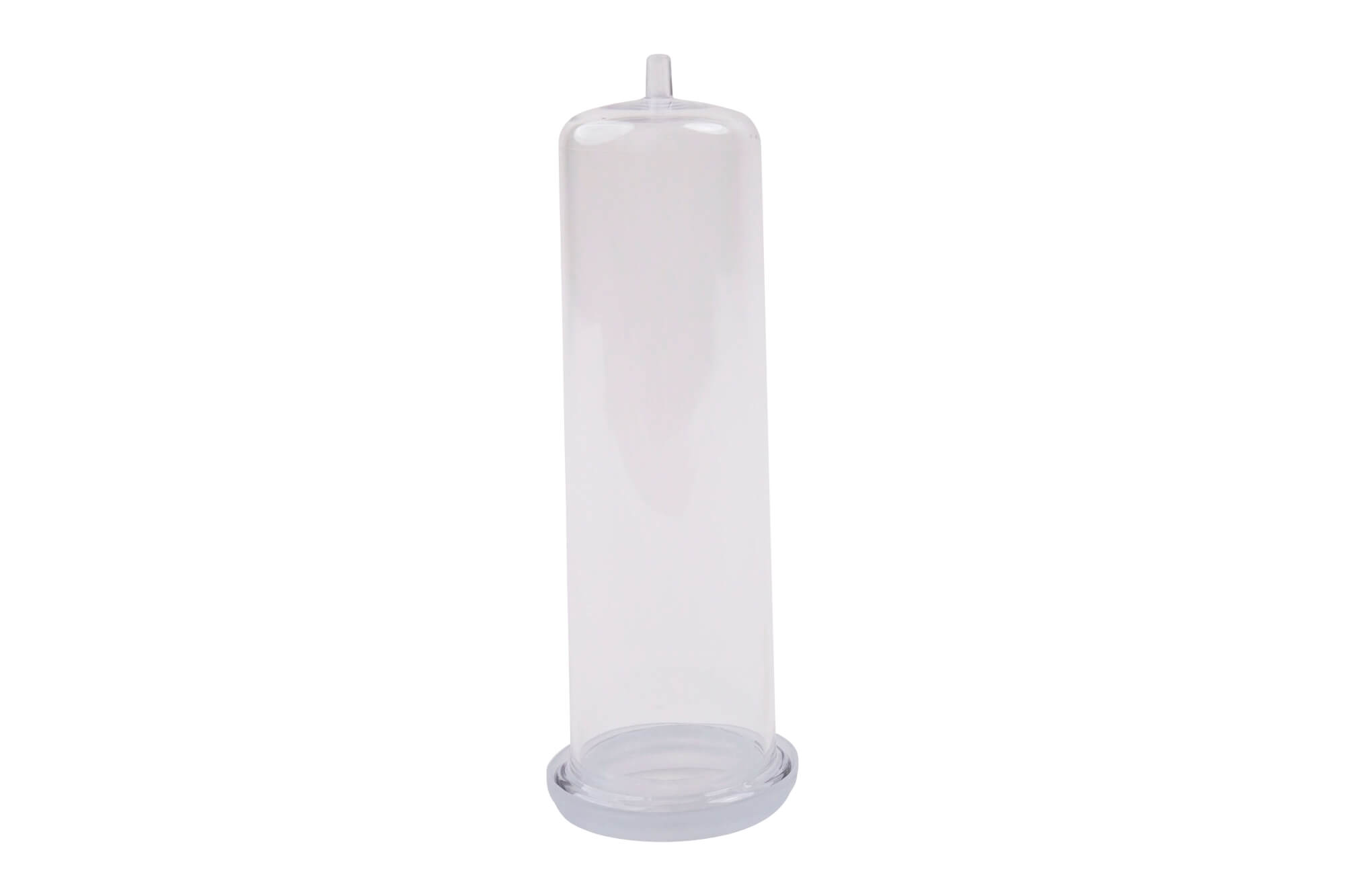 Priehľadný vákuový valec je dlhý 20 cm, s vnútorným priemerom 5,5 cm.