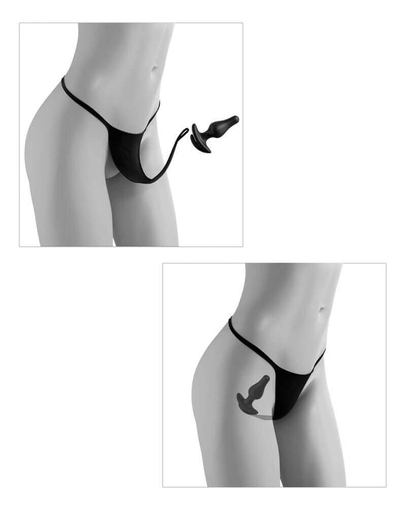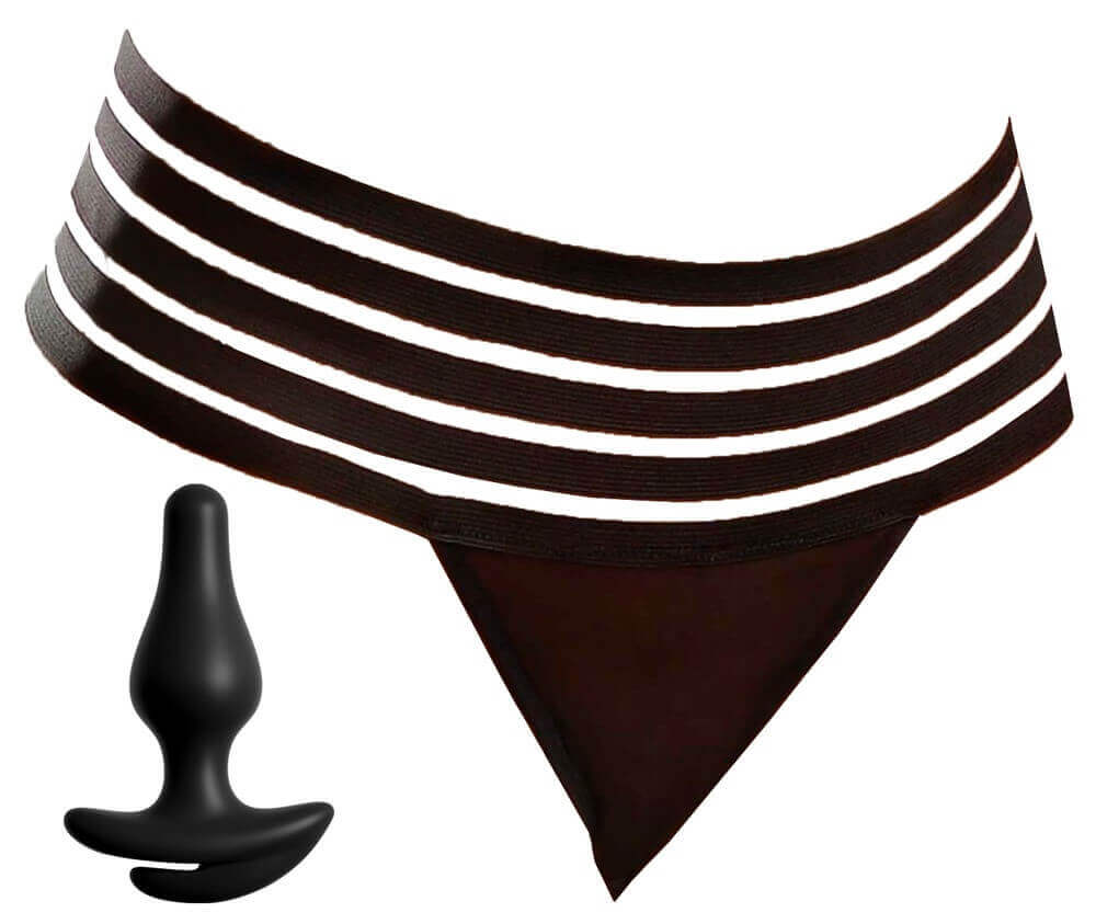 HOOKUP Plug – pruhované nohavičky s análnym dildom (čierne) Kombinácia dámskych nohavičiek s efektným širokým pruhovaným pásom s análnym dilatačným dildom, ktorý môžete nosiť pod šatami a užiť si tajné potešenie! Obsah balenia: 1 pruhované nohavičky1 análne dildo Výhody : Análne dildo, ktoré môžete nosiť počas dňa tajne, skryté pod oblečením.Sexy nohavičky... Viac info