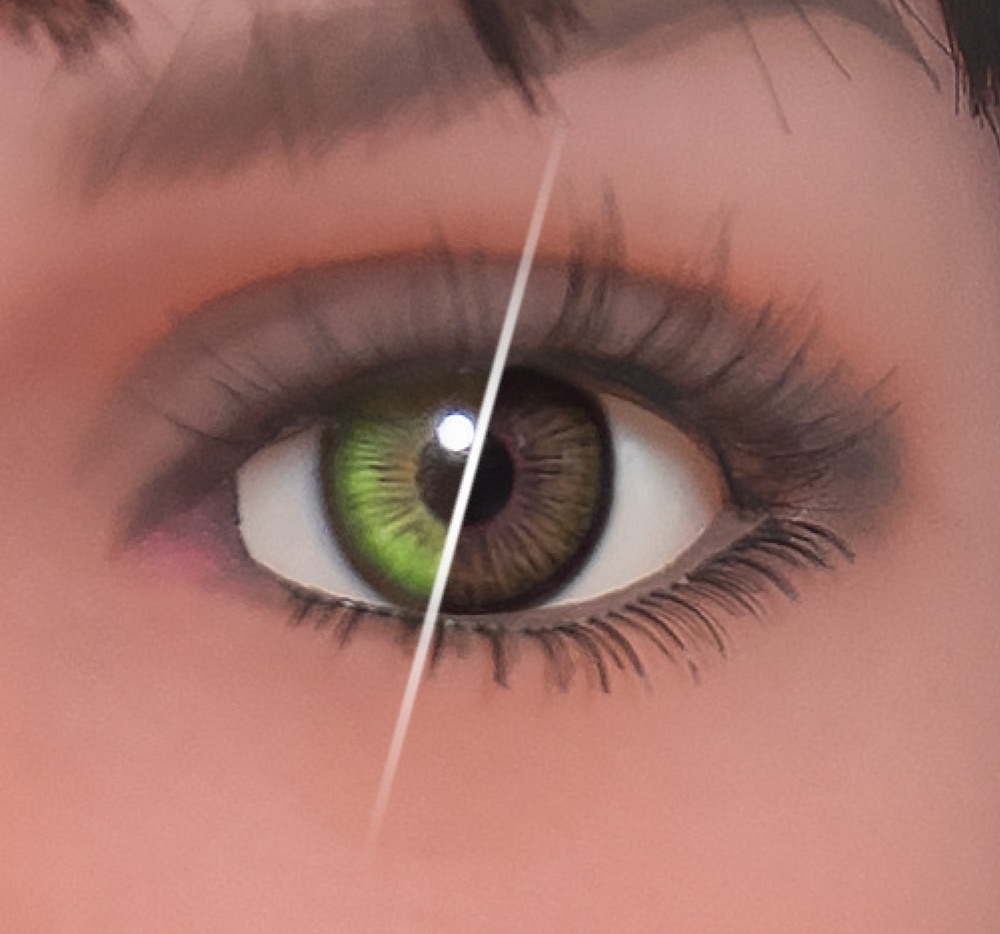 Variabilná farba očí - môže sa na vás pozerať pri kľačaní zelenými alebo hnedými očami.