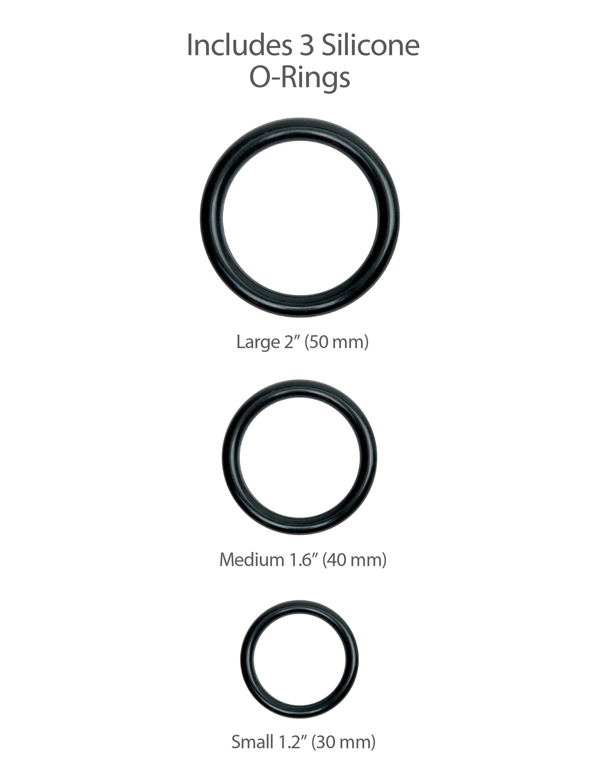 3 silikónové krúžky na uchytenie dild rôznych veľkostí (3 cm, 4 cm, 5 cm)