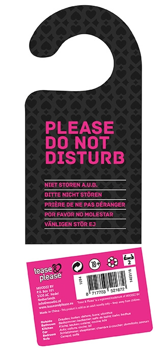 Sada tiež obsahuje vešiak na dvere, s nápisom (jazyky: angličtina, holandština, francúzština, nemčina, španielčina, svédčtina) - Prosím, nerušiť!.