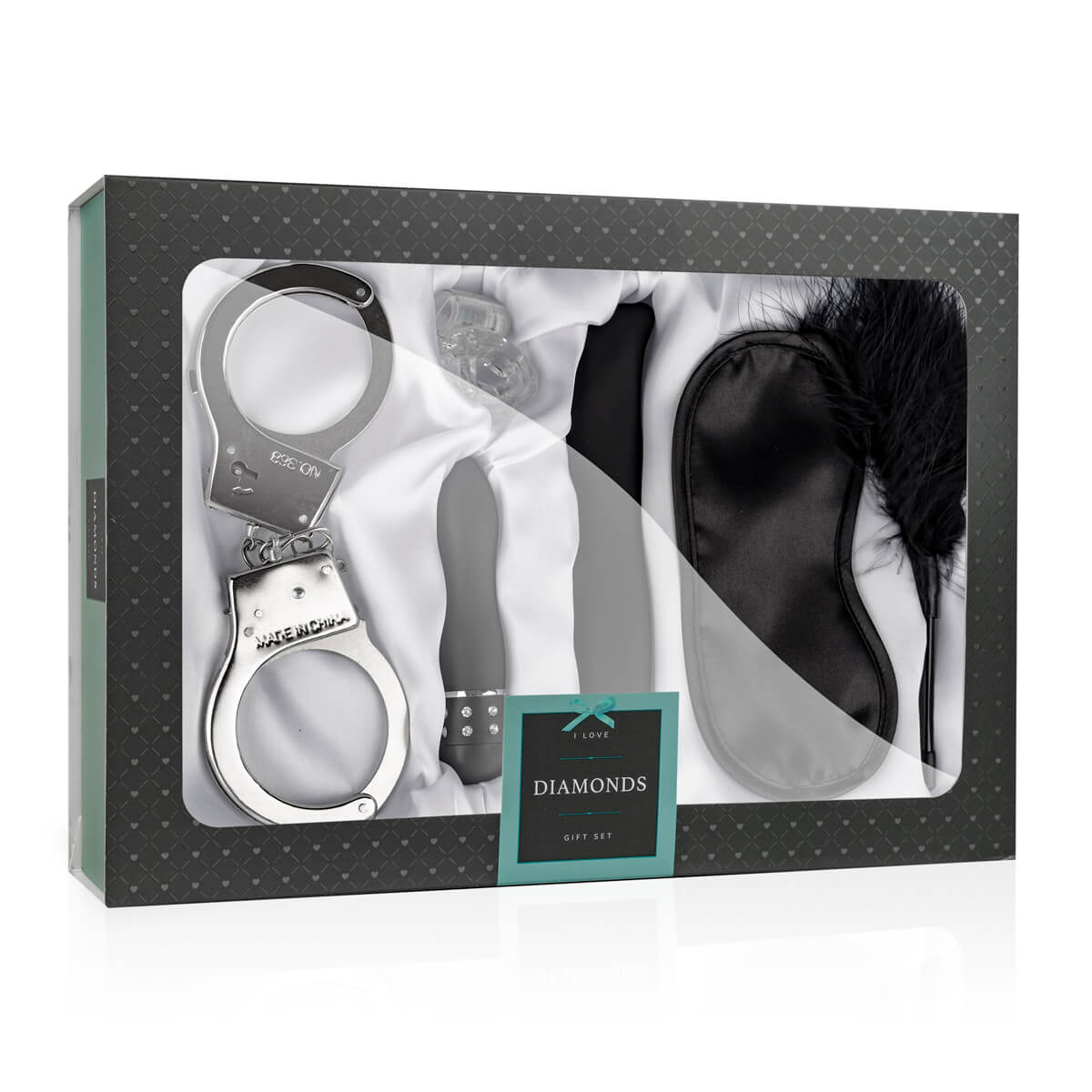 Loveboxxx I love Diamonds - zväzovacia súprava s vibrátorom (6 dielna) - čierno-strieborná