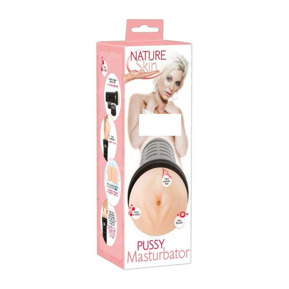 Nature Skin Pussy Masturbator - extra hlboký masturbátor, realistická vagína v púzdre (telová farba-čierna)