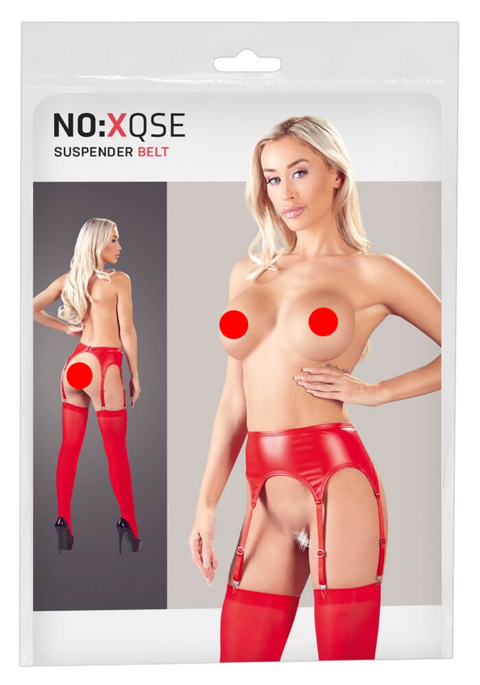 NO:XQSE – lesklá súprava: podväzkový pás + pančuchy (červená) Zvodná červená súprava s podväzkovým pásom v lesklom „latex-looku“ a párom pančúch. 3+3 nastaviteľné popruhy, kovové prvky, zvodný vzhľad na pár sekúnd pripravený. Prečo si ju zamilujete Lesklý efekt „wet look“ pre výrazne sexi štýl. 3 podväzkové popruhy na každej strane – stabilné držanie... Viac info