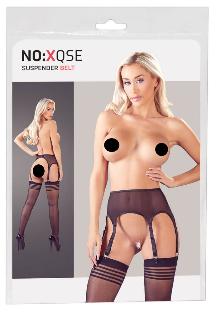 NO:XQSE - pruhované pančuchy s podväzkovým pásom (čierne) Zmyselný dvojdielny set v ikonickej čiernej: pruhované samodržiace pančuchy „po stehná“ a nastaviteľný podväzkový pás s pevnými kovovými časťami. Spoľahlivé držanie, elegantný vzhľad – hotové riešenie pre každú erotickú príležitosť. Prečo si ich zamilujete Jemný, vysoko pružný materiál – príjemný... Viac info