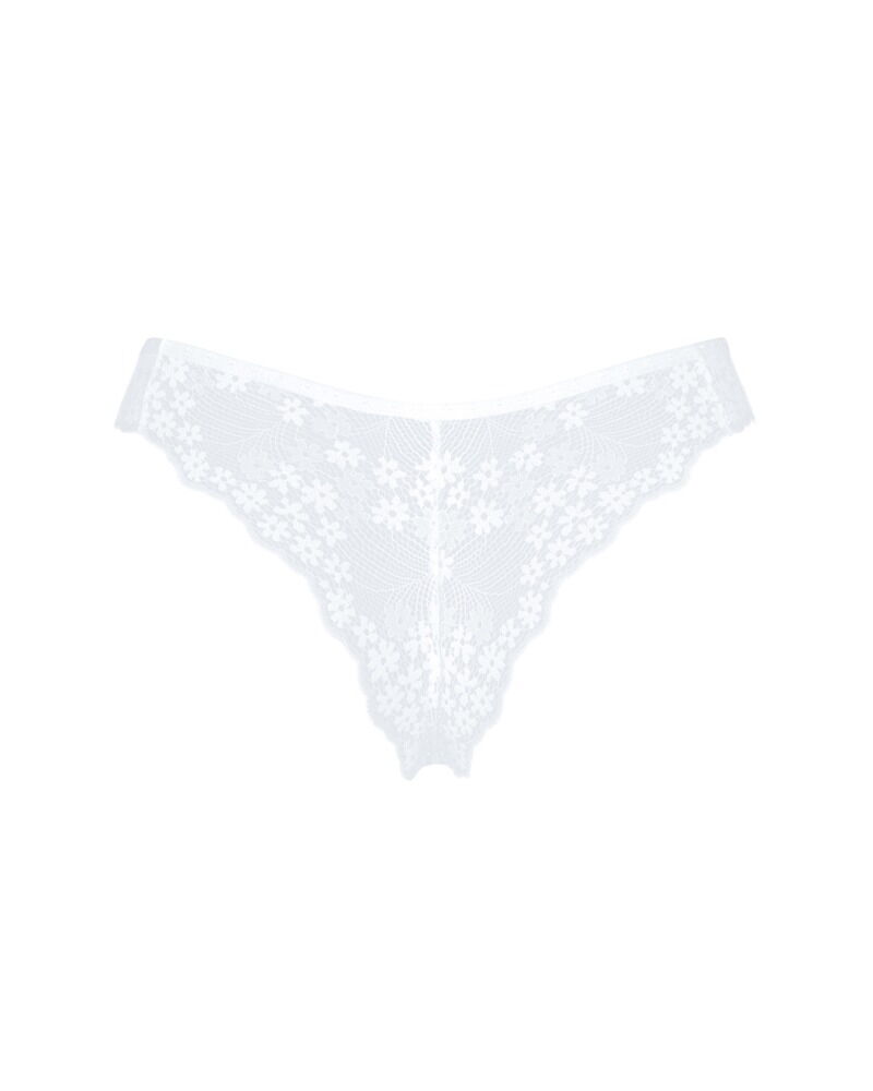 Obsessive Heavenlly – brazílske tangá (biela) Jemné a zvodné brazílske tangá do „V“ z kolekcie Heavenlly. Priesvitný strečový tyl s kvetinovou čipkou a drobným šperkovým detailom v páse zvýrazní krivky a poskytne celodenné pohodlie. Prečo si ich zamilujete Brazílsky strih do „V“ – opticky predĺži nohy a krásne tvaruje zadok Jemný strečový tyl + kvetinová... Viac info