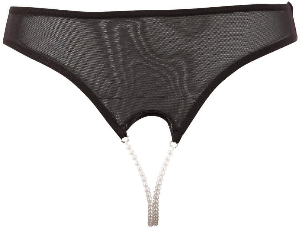 Dekoratívne, nevšedné šperkové tangá, ktoré môžete mať na sebe hoci aj počas aktu! Z mimoriadne pohodlnej, elastickej, mierne priesvitnej látky, v lone s dvoma radmi bielych, plastových perál. Poskytujú nevšedný vizuálny zážitok, a ani podstata nezostane zakrytá. Materiál: 90% polyamid, 10% elastan. Farba čierna s bielymi perlami. Viac info