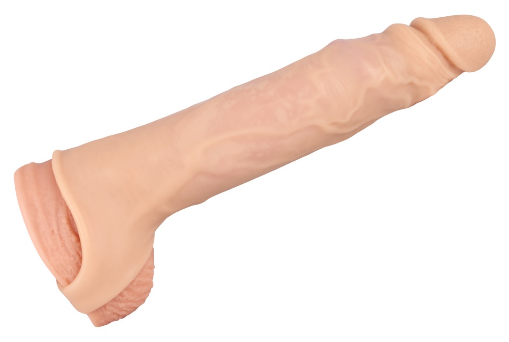 Realistixxx - návlek na penis s krúžkom na semenníky +5cm (16 cm) prírodný