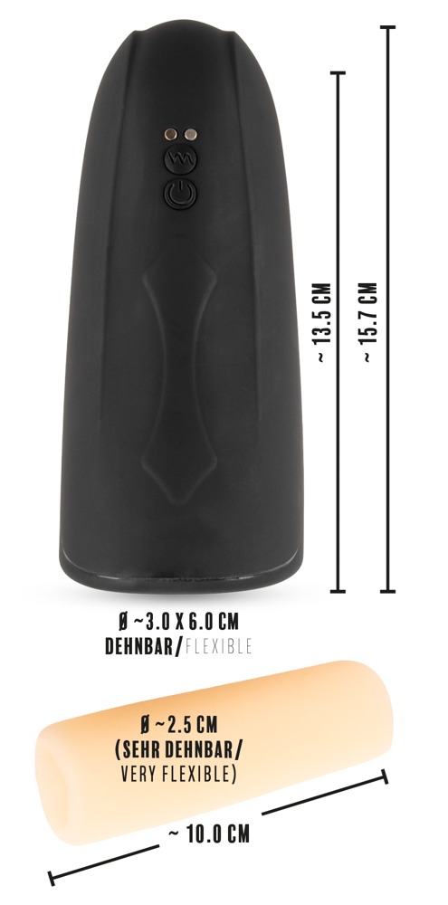 Ľahko držateľný masturbátor s vložkou a 2 funkciami od Rebel. Veľmi intenzívne trasie a pulzuje a masíruje celý penis. Má tiež silné pulzujúce a úderné impulzy, ktoré stimulujú žaluď a citlivú uzdičku. Perfektný tréning penisu pre väčšiu sexuálnu výdrž!