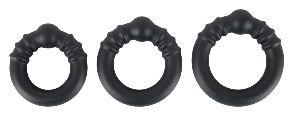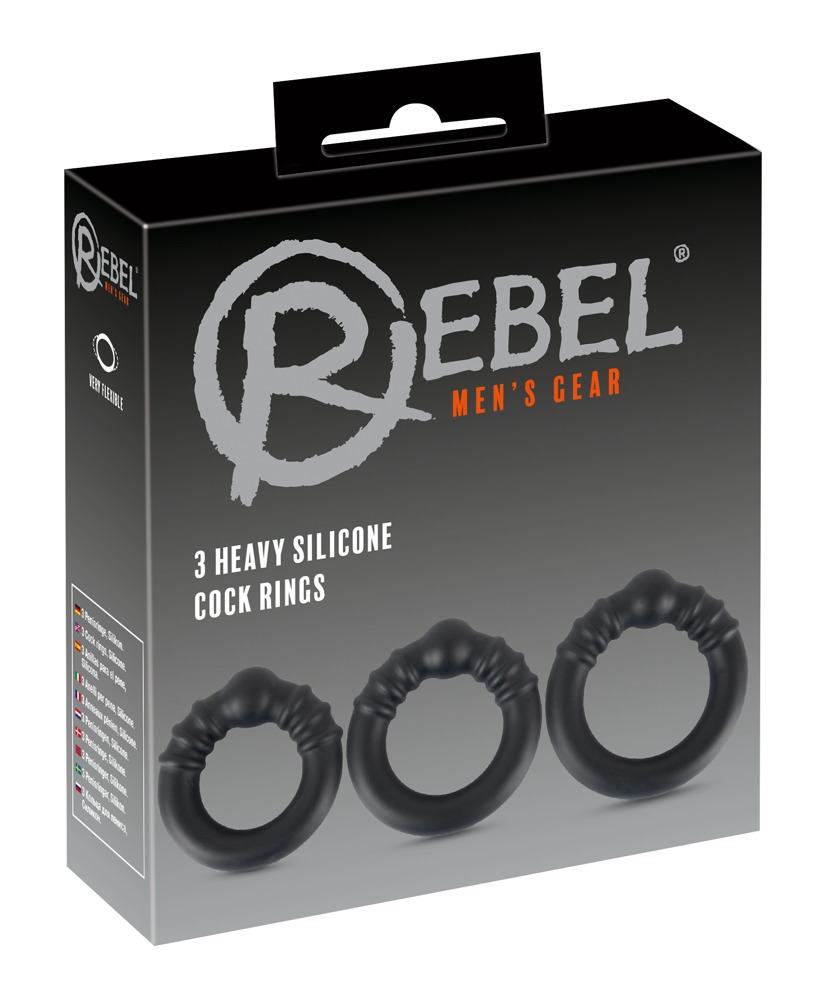 3 ťažké silikónové erekčné krúžky od Rebel - 3 erekčné krúžky v sade. Každý prsteň je vyrobený zo zamatovo mäkkého silikónu s otvoreným kovovým prstencom vo vnútri.