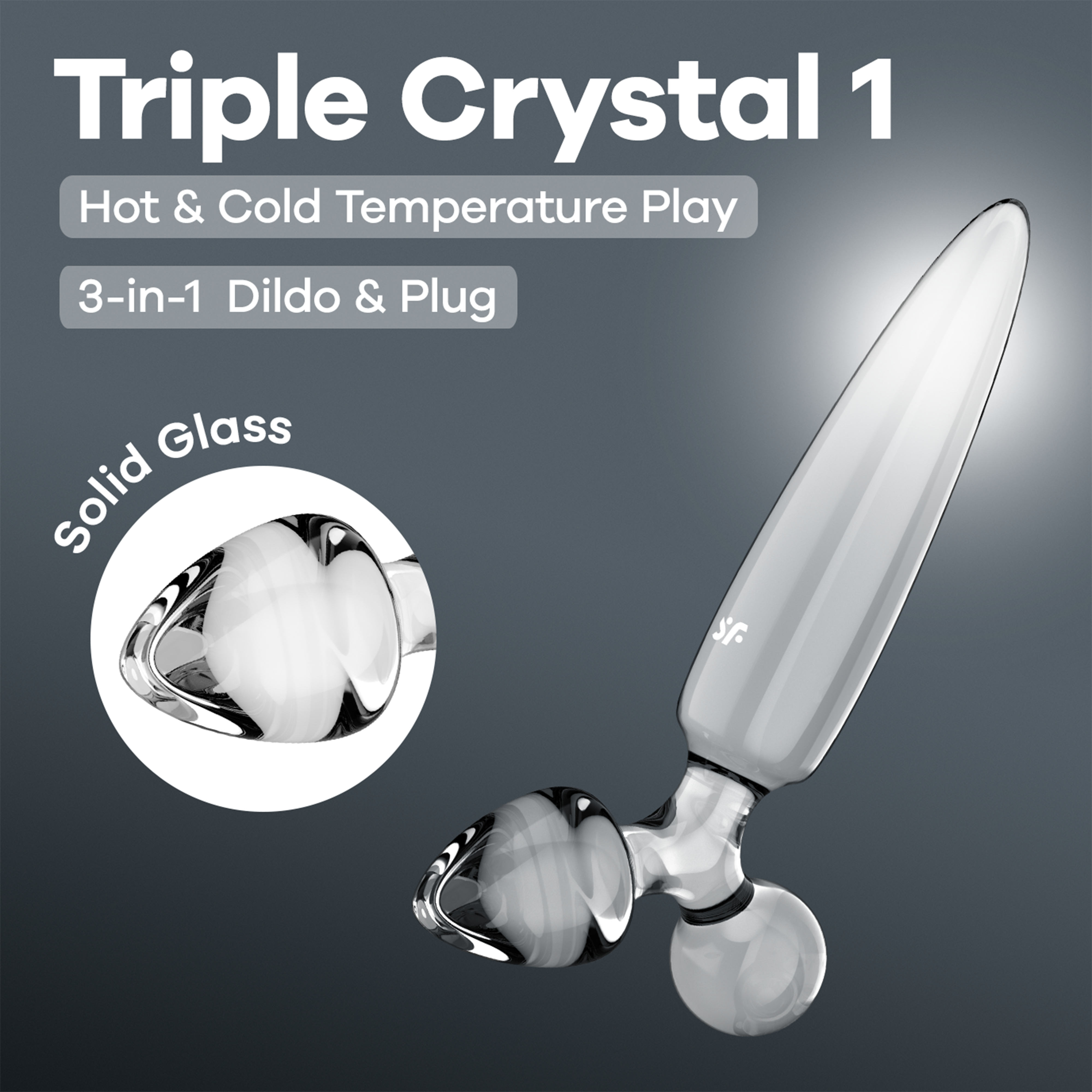 Satisfyer Triple Crystal 1 – Sklenené Dildo 3v1, 21 cm (priesvitné)