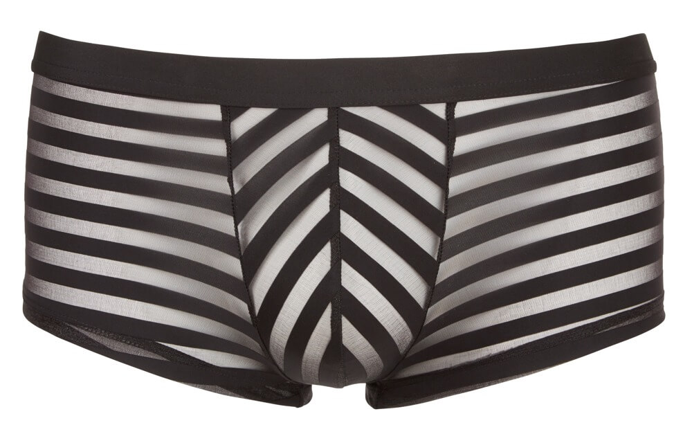 Extra sexi, mužné boxerky pre mužov! Boxerky vyrobené z módneho, flexibilného, príjemného materiálu s jasnými, priehľadnými pruhmi pre veľkolepý vzhľad. So širokým pásom.Je elastický, takže perfektne sedí a v prednej časti je vyrobený so strihom zvýrazňujúcim penis pre ešte výraznejšiu mužnosť. Materiál: 90% Polyamid, 10% Elastan.V čiernej farbe.... Viac info