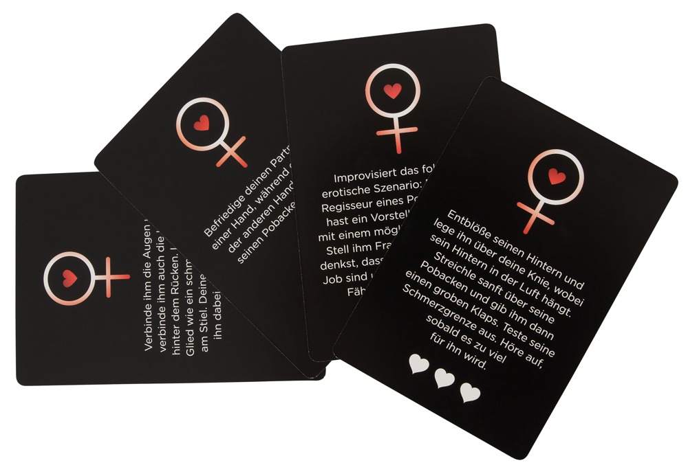 Erotická kartová hra pre pár.90 nápadov, návrhov a aktivít.Skvelý darček.Exkluzívna nemecká verzia! Hra pre vzrušujúcu dvojicu s 90 inovatívnymi erotickými nápadmi, sexy návrhmi a dobrodružnými aktivitami. Účasť je rovnako vzrušujúca a stimulujúca ako výhra, keď pár hrá túto fantastickú hru! Obsah: 90 kariet úloh plus 8 špeciálnych kariet, 2 žolíky,... Viac info