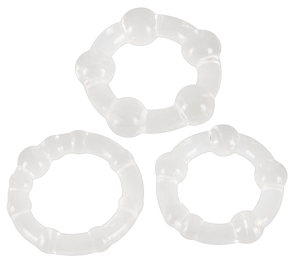 Súprava 3 ks krúžkov na penis, s 3 rôznymi stimulačnými povrchmi a rozmermi (3 - 4 cm).