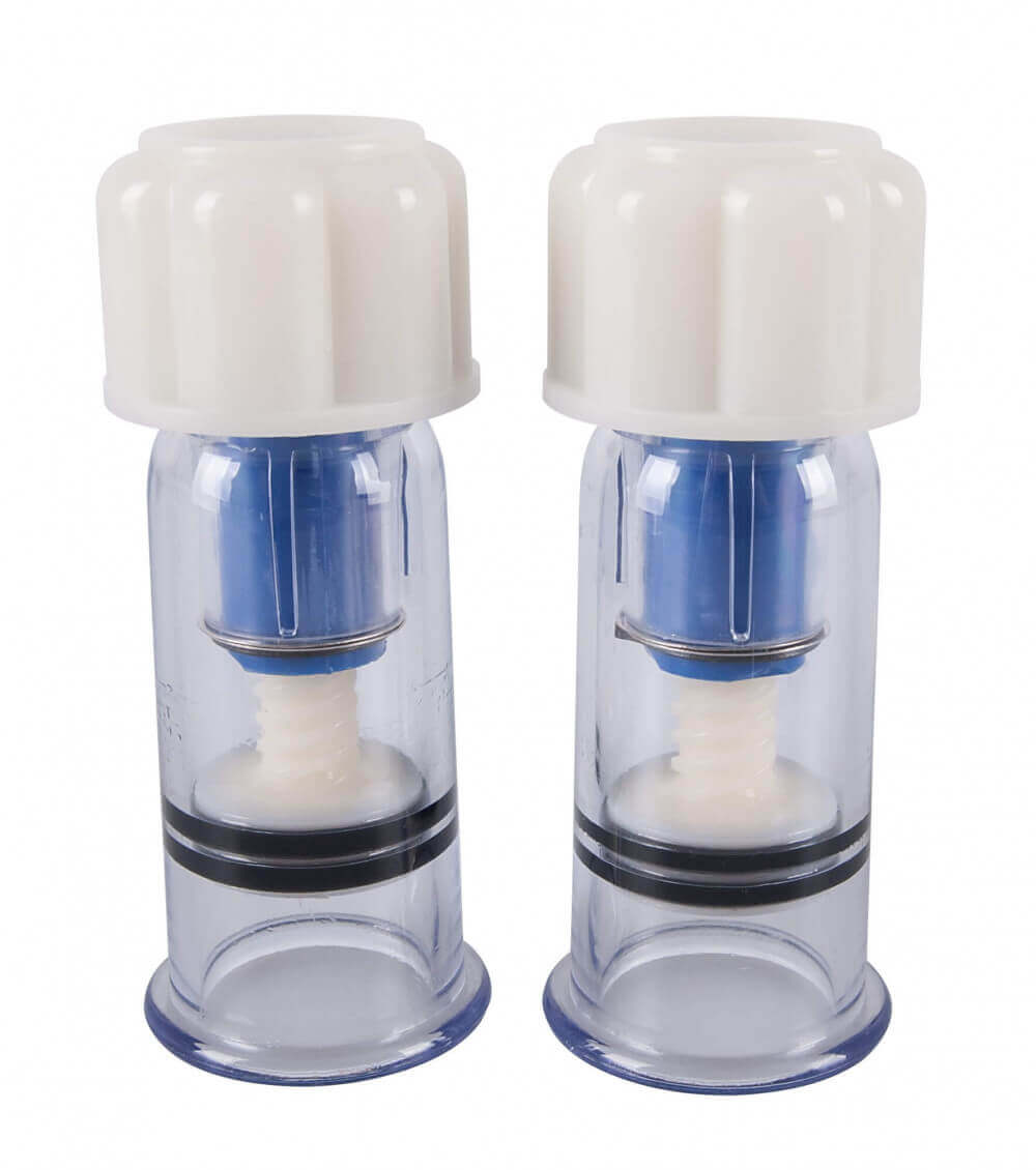Špeciálne, zmyselné sanie bradavkám a vždy špicatý výsledok! Valčeky z pevného materiálu (1pár),v ktorých sa pomocou nastaviteľných bielych skrutiek vytvára vákuový efekt, poskytujúce sanie. Parametre : Dĺžka valčekov 10 cm, priemer 2,8 cm. Materiál: ABS. Kombinácia priehľadnej, modrej a bielej farby.