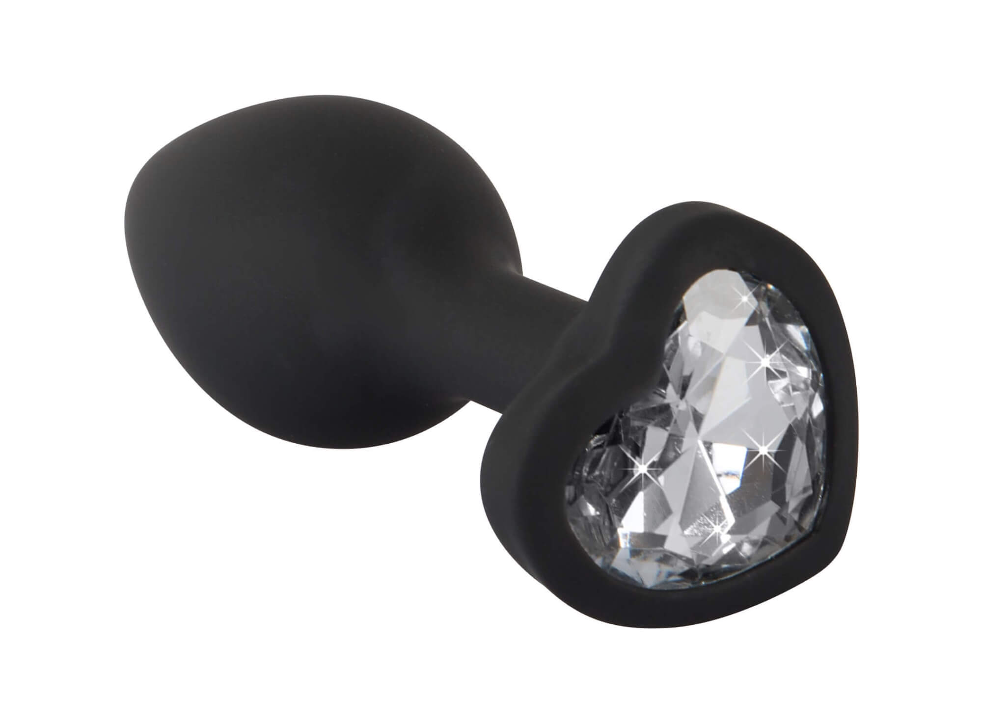 You2Toys Silicone Butt Plug - análny kolík v tvare srdca s bielym kamienkom (čierny)