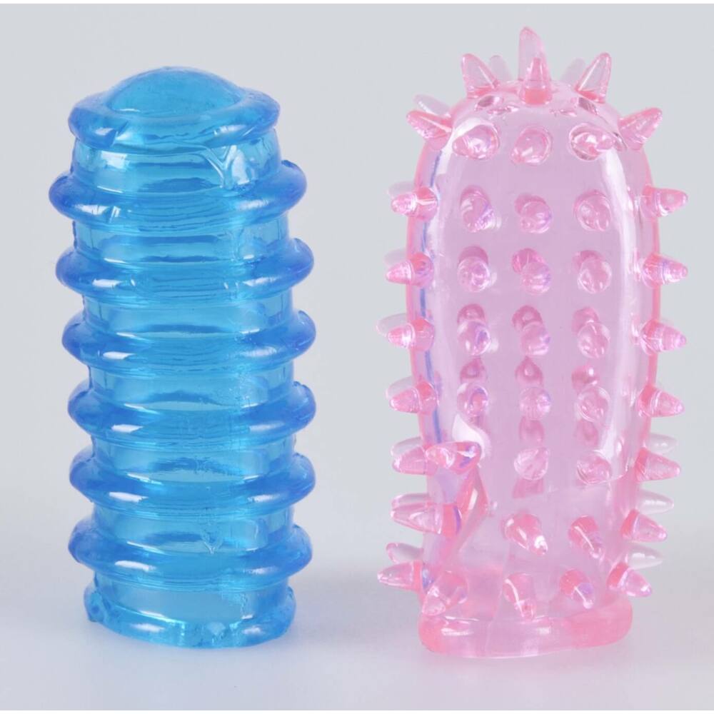 Stimulátory z mäkkého, silikónového materiálu. Extrémne pružná dĺžka (4,5 cm) a priemer (1,3 cm). Jeden modrý stimulátor s vrúbkovaným povrchom a jeden ružový s hrboľčekovitým povrchom.
